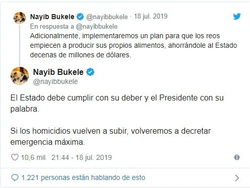 El mandatario detalló ese día que de volver a incrementarse los asesinatos o ataques, el estado de emergencia se reactivará y los reos pasarán a un aislamiento total.