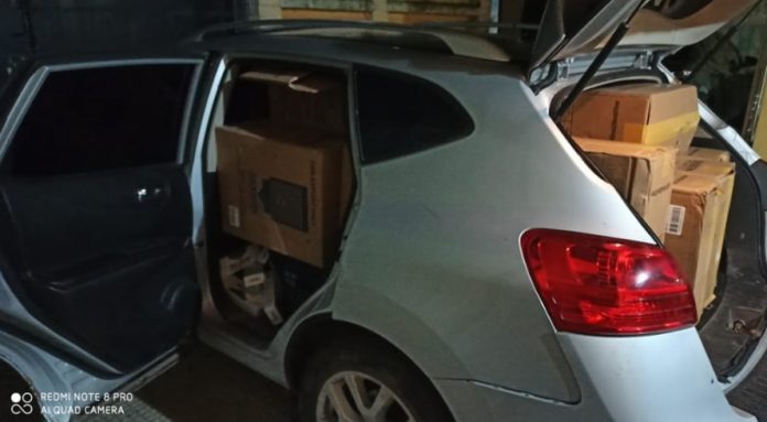 Dentro del vehículo encontraron 33 cajas que contenían 50 paquetes de 10 cajetillas de cigarros cada uno, además de nueve cajas conteniendo 25 paquetes de 10 cajetillas por paquete cada una, sumando un valor comercial de 18 mil 750 dólares, elementos que fueron decomisados.