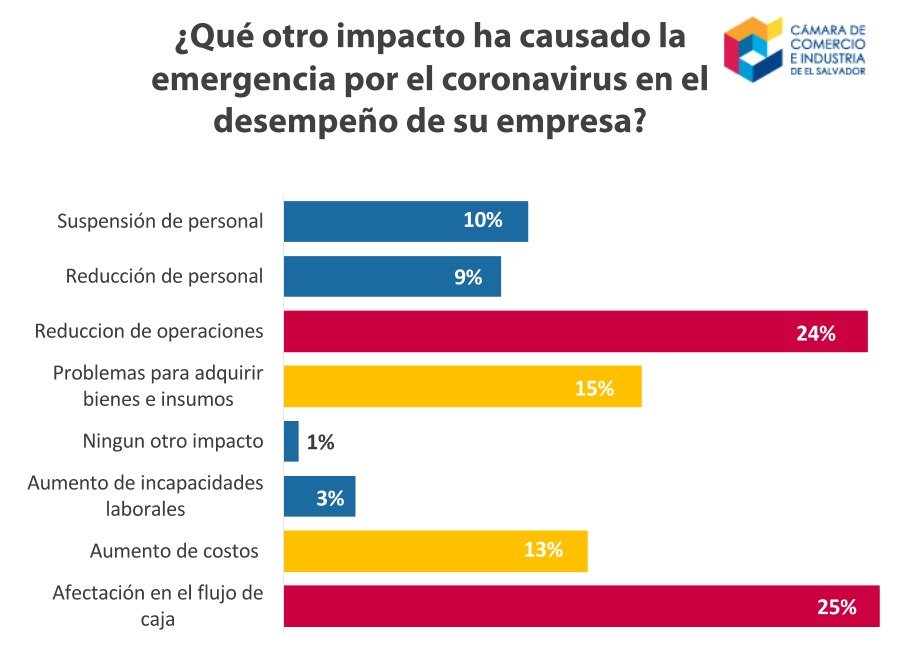 El dato se recoge de la tercera encuesta Impacto de la Emergencia en la economía de la MIPYME salvadoreña, realizada del 19 al 28 de abril, con la participación de 467 empresas agremiadas, las cuales representan el 21% de su membresía.