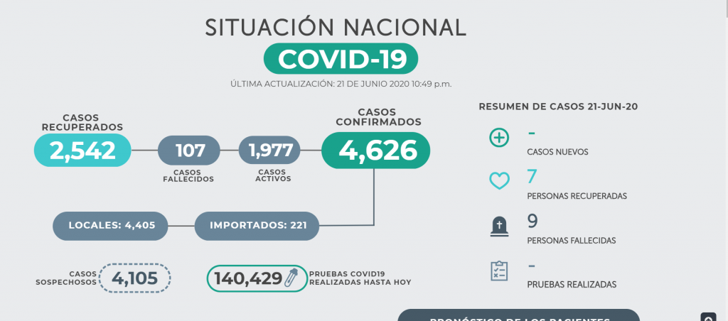 El Ministerio de Salud confirmó la noche de este domingo, nueve decesos por coronavirus.