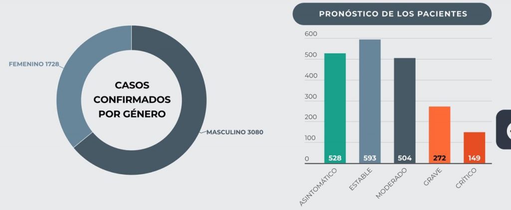 En cuanto al escrutinio de casos; el portal covid19.gob.sv detalló que 2,046 son activos, es decir en tratamiento: 528 son asintomáticos, 523 están estables; 504 tienen diagnóstico moderado; los casos graves ascienden a 272 y los críticos en 149.
