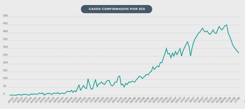 Al 17 de agosto, se reportan 23,462 casos confirmados de COVID-19.