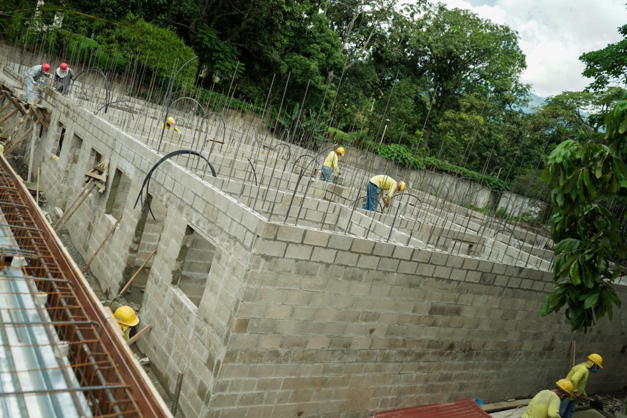 Este lunes, se constató los avances del proyecto, que incluye estudio de suelos, obras de terracería, diseño estructural, diseño eléctrico, diseño hidráulico y permiso ambiental. Además, se ha realizado la instalación de tuberías de agua potable, instalaciones eléctricas provisionales, primer nivel del módulo A, avance en el pegamento de bloque del primer nivel del módulo B y estabilización de suelos en edificios C y D.