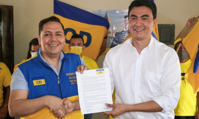 El candidato a alcalde por el partido Cambio Democrático, Geovany Flores, en San Miguel, dio a conocer ante los miembros y la población su apoyo a la reelección del actual alcalde, Miguel Pereira del partido Frente Farabundo Martí para la Liberación Nacional (FMLN).