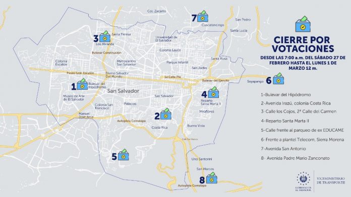 Ocho vías han sido cerradas a partir de las 7:00 de la mañana de este sábado para instalar centros de votación que funcionarán en las elecciones legislativas y municipales este 28 de febrero.