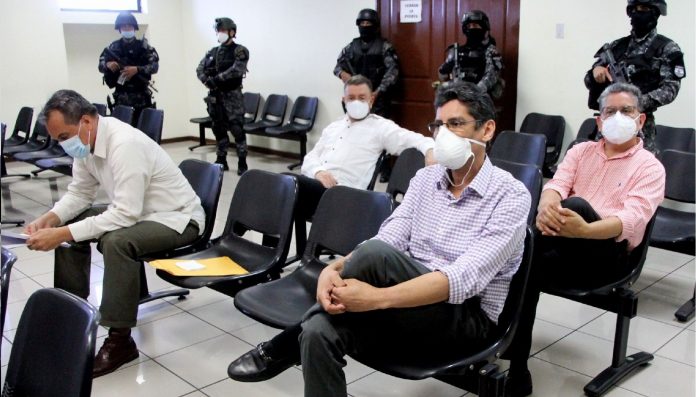 Benítez y Munguía Payés, son acusados por peculado y falsedad documental agravada; de los mismos cargos son procesados el empresario y ex presidente del partido ARENA, Carlos Gustavo López Davidson y el representante legal de CENTRUM, Héctor Abel Herrera.