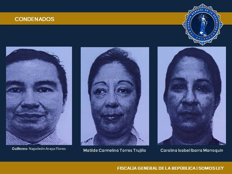 Los sentenciados fueron identificados como: Guillermo Napoleón Araya Flores, médico cirujano, Matilde Carmelina Torres Trujillo, enfermera instrumentalista, y Carolina Isabel Ibarra Marroquín, enfermera circular.