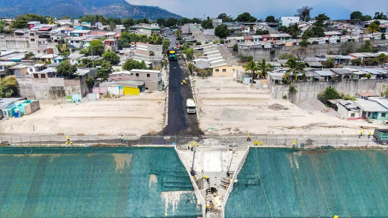 El Ministerio de Obras Públicas (MOP), continúa hoy los trabajos de reconstrucción de la calle principal de residencial Santa Lucía, Ilopango, afectada por la cárcava de grandes dimensiones formada en el lugar, cuyas obras de protección para su eliminación están por concluir.