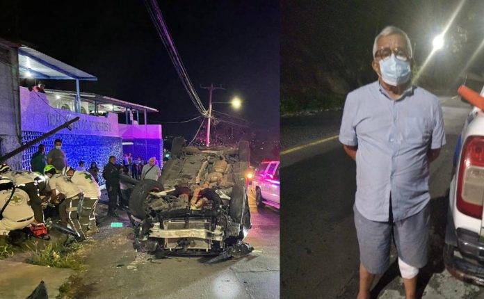 El ex legislador de ARENA, volcó en su vehículo causándose heridas de gravedad en la pierna izquierda; y golpes de consideración en cabeza y brazos, según reportó Cruz Verde Salvadoreña, que brindó asistencia primaria.