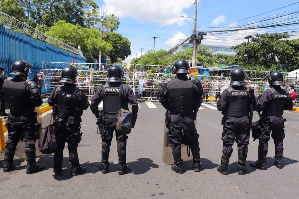 Un contingente de la Unidad del Mantenimiento del Orden de la Policía Nacional Civil se apostaron en las afueras de la Asamblea Legislativa, para impedir el paso de los manifestantes. Foto: Cortesía