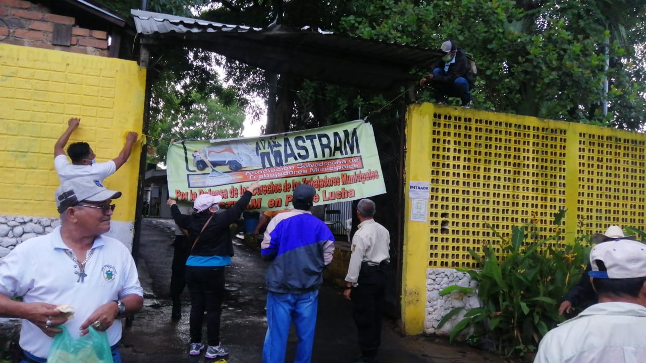 Sindicalistas de la Asociación Salvadoreña de Trabajadores Municipales (ASTRAM) realizaron este martes, una protesta en la Alcaldía de Zacatecoluca, denunciando despidos masivos.