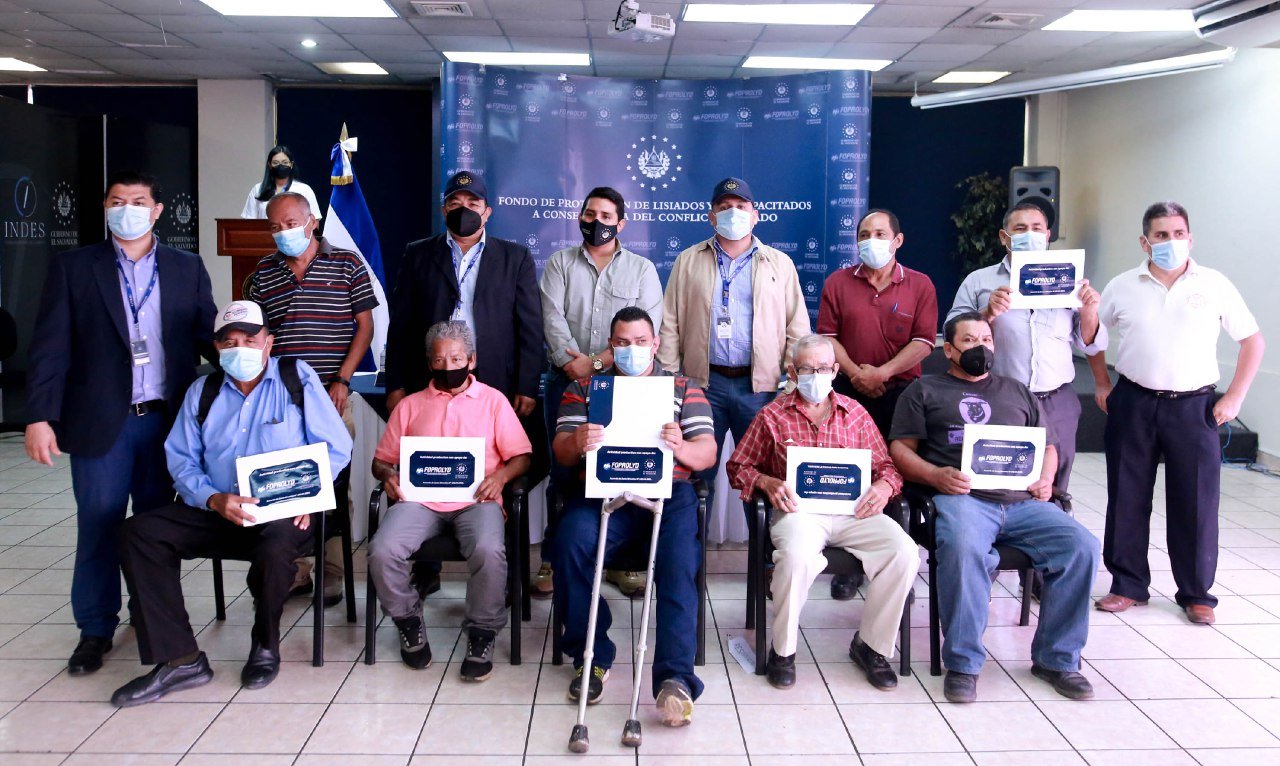54 personas emprendedoras con discapacidad de los departamentos de San Salvador y Cabañas, recibieron este viernes capital semilla para sus actividades por parte del Fondo de Protección de Lisiados y Discapacitados a Consecuencia del Conflicto Armado (FOPROLYD).