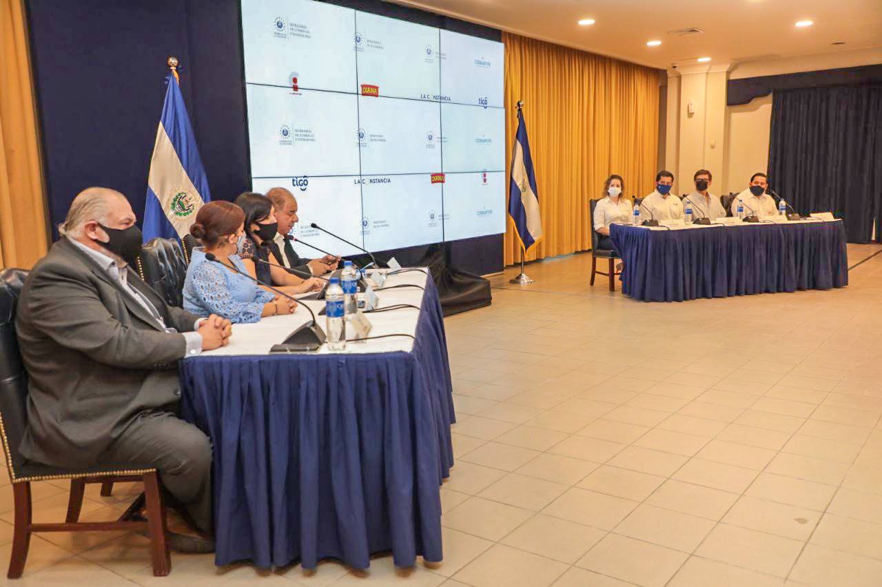En la firma de la carta de entendimiento participan: el secretario de Comercio, Miguel Kattán; la Ministra de Economía, María Luisa Hayem; la Ministra de Turismo, Morena Valdez; y el Presidente de la Comisión Nacional de la Micro y Pequeña Empresa (CONAMYPE), Paul Steiner y los representantes de las empresas: TIGO El Salvador, La Constancia, Productos Alimenticios DIANA y C Imberton.