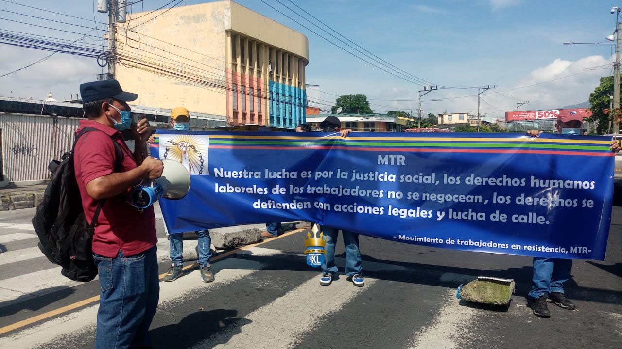 El Movimiento de Trabajadores en Resistencia (MTR), realizó este viernes una protesta en las afueras de la Alcaldía de San Salvador, ante la reciente ola de despidos en el Cuerpo de Agentes Municipales (CAM).
