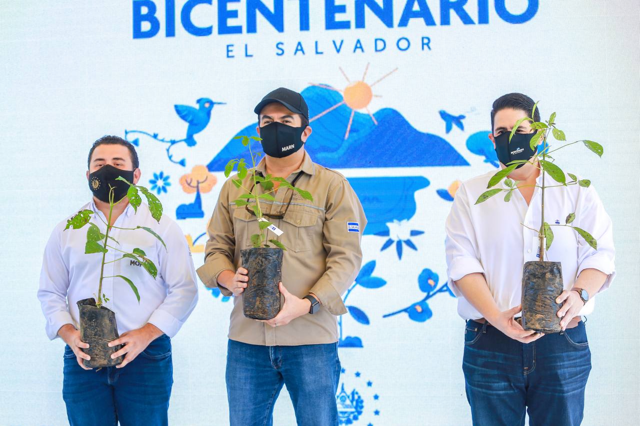 El Ministro de Obras Públicas, Romeo Rodríguez Herrera, participó hoy junto a su similar de Medio Ambiente y Recursos Naturales, Fernando López, y delegados de la Comisión Ejecutiva Hidroeléctrica del Río Lempa (CEL), en la plantación de árboles en conmemoración del Bicentenario de independencia de El Salvador.