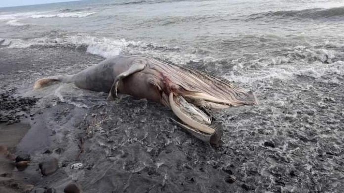 Una Ballena Jorobada muerta y ya en estado de descomposición fue encontrada a la orilla de la playa Las Flores, La Libertad, según reportes de Cruz Verde Salvadoreña.
