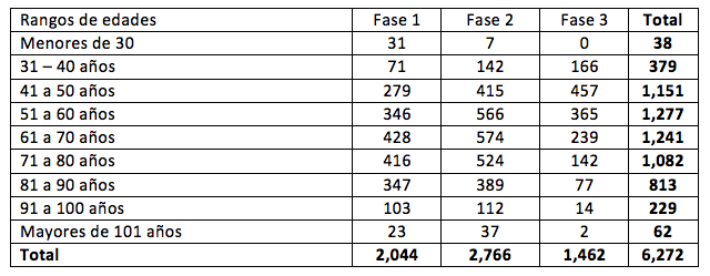 Las víctimas reportada por organizaciones hasta la fase 2, haciendo un total de 2,766 son:
