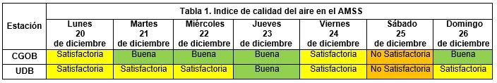 La información proviene de los datos registrados por la red de estaciones de monitoreo de la calidad del aire, ubicadas en el AMSS, una de ellas localizada en la Universidad Don Bosco e identificada como estación UDB, y otra en el Centro de Gobierno, denominada estación CGOB.