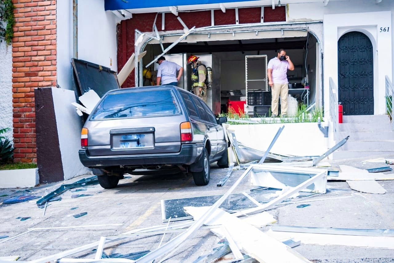 Cuatro personas resultaron lesionadas y fueron trasladadas a un centro de atención médica. También se reportan daños materiales, como los ventanales del local y artículos de cocina.