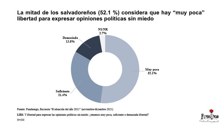 • Un 52.1% de los encuestados considera que hay “muy poca” libertad para expresar opiniones políticas sin miedo.