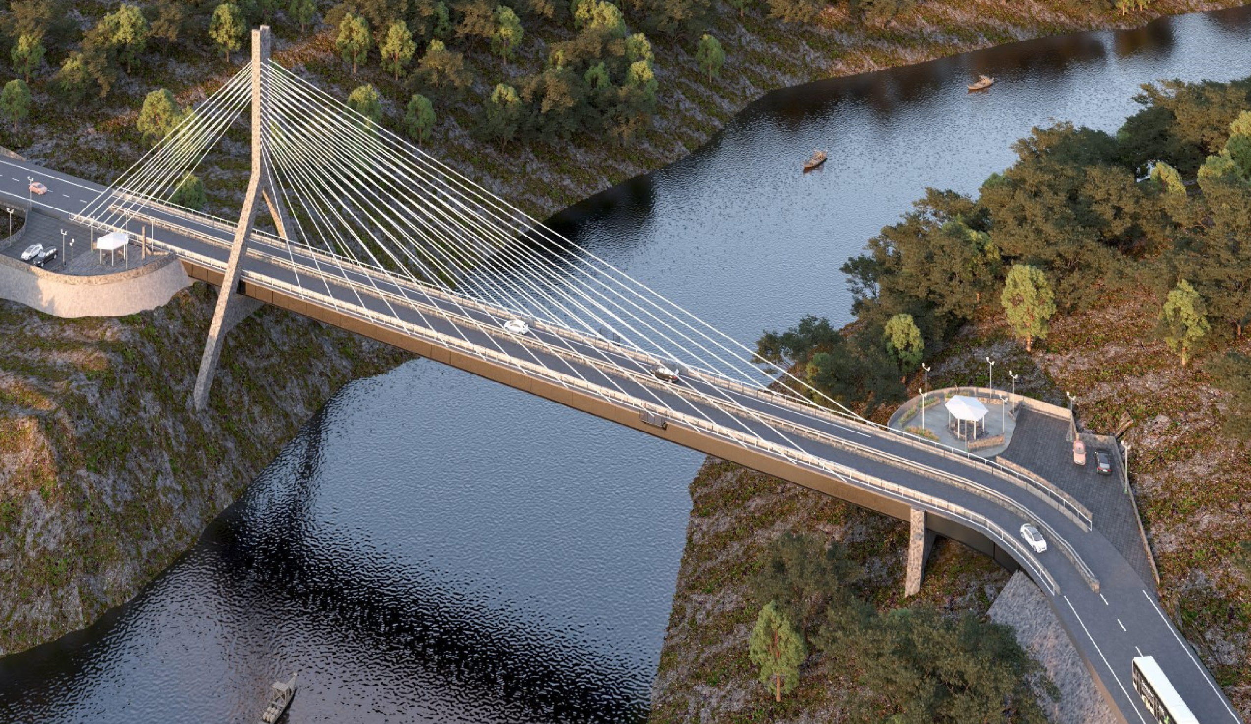 Los puentes tendrán dos carriles con capacidad para camiones pesados de hasta 40 toneladas, aceras laterales para peatones, miradores a los extremos y estructura para practicar Bungee Jumping.