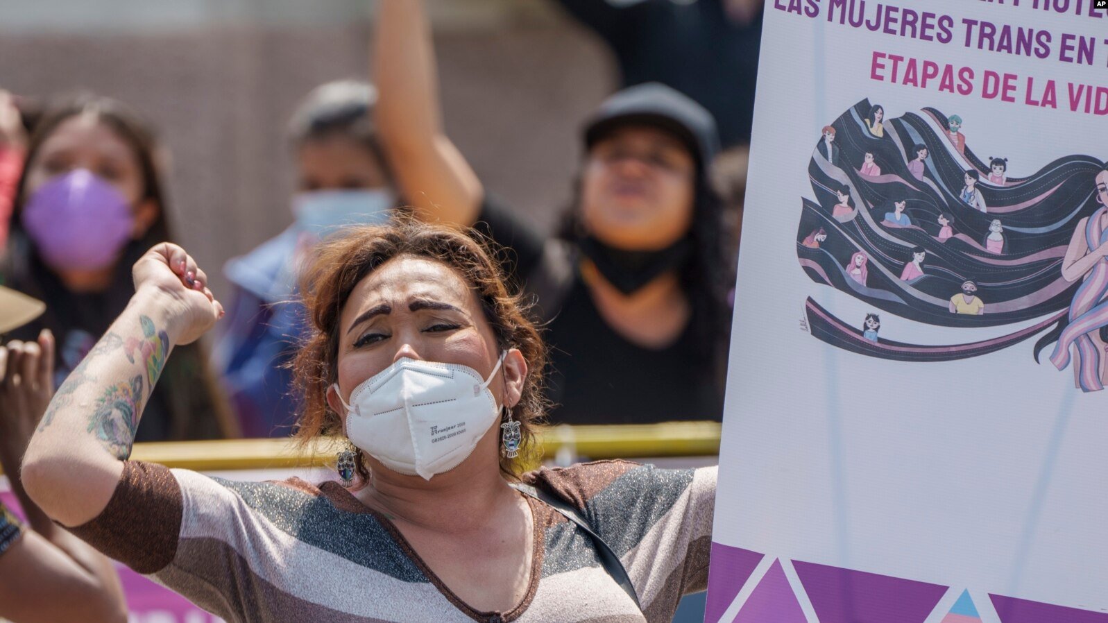 Activistas se manifiestan al margen de un evento que celebra una nueva ley denominada "Ley para la Protección de la Vida y la Familia", para protestar por la nueva ley en la Ciudad de Guatemala, el 9 de marzo de 2022.