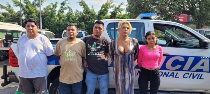 Los detenidos fueron identificados como: Joaquín Alberto Rodríguez, de 32 años; Elmer Alcides Munguía Recinos, 20 años; Norma del Carmen Bonilla, 26 años; Joel Isaac Hernández, 28 años y Enrique Alexander Melara, 42 años, quienes asaltaban a punta de pistola.
