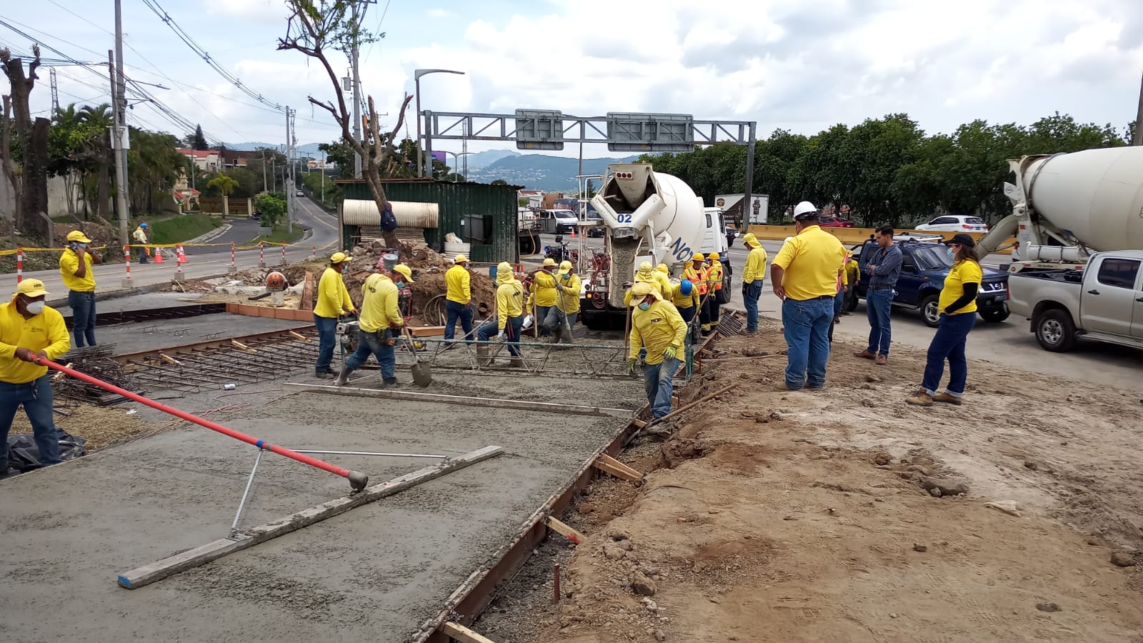 La Obra de construcción en el Bulevar Monseñor Romero, acceso a Calle al Boquerón, presenta un avance del 45% por ciento en la pavimentación de uno de los dos accesos que conectará dichos tramos, el proyecto podría finalizar antes del mes de noviembre que es el plazo que han establecido como fecha de finalización.