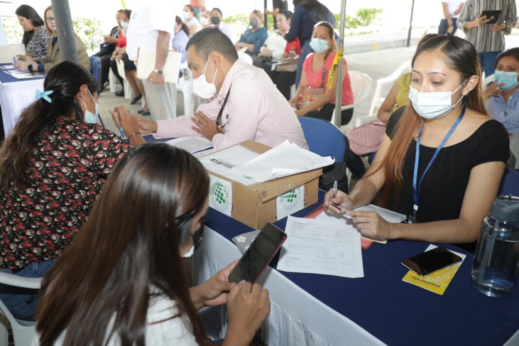 Jovenes aplican para una oferta de empleo en una feria organizada por el Ministerio de Trabajo. Foto: Cortesía.