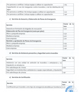 La propuesta agrega que el cuerpo de Bomberos cobrará por servicios prestados, como inspecciones en empresas y capacitaciones del personal a cargo de comités ocupacionales.