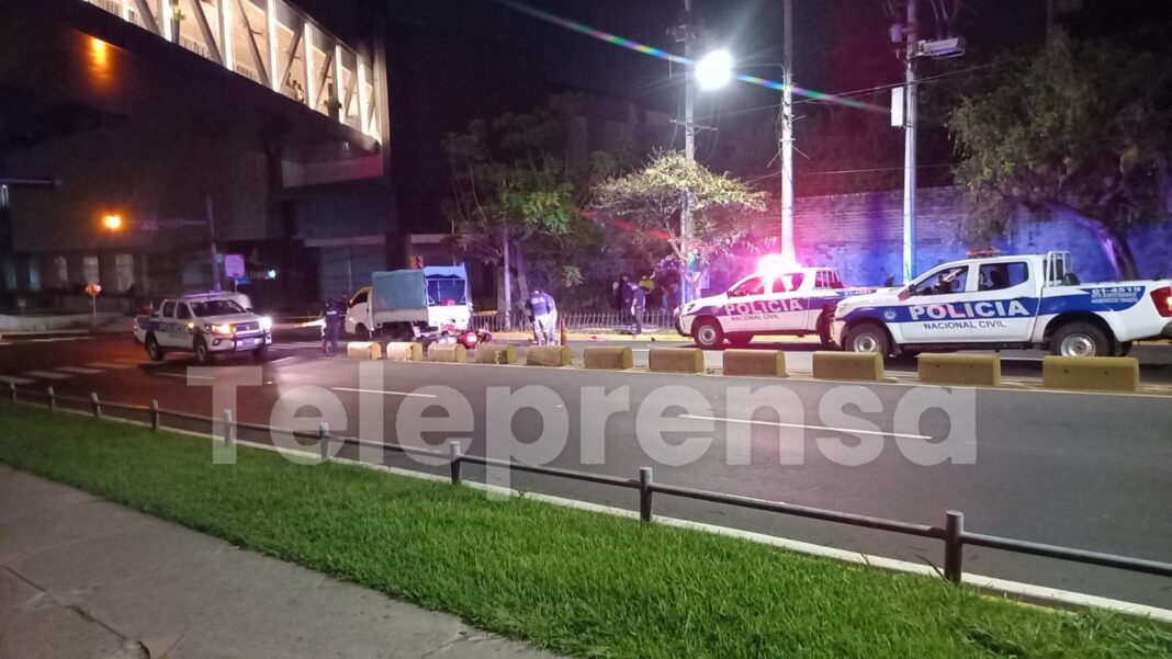 #TráficoSV 🚨 | En horas de la madrugada, dos motociclistas impactaron con la parte trasera de un automóvil y un camión mientras hacían alto en un semáforo, en el Paseo General Escalón y la 71 av. Norte.