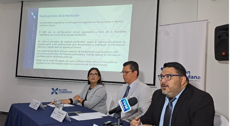 Acción Ciudadana denunció el miércoles que la Cámara 1° de lo Contencioso Administrativo anuló la resolución del Instituto de Acceso a la Información Pública (IAIP) del año 2019 en donde mandataba a la Asamblea Legislativa entregar el registro de las reuniones de los diputados, aludiendo que el Órgano Legislativo no está obligado a llevar registro por no tratarse información oficiosa y que se podría revelar datos confidenciales.