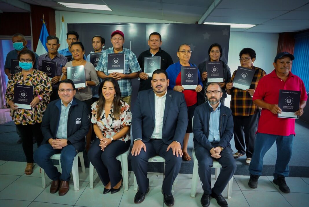 El Ministerio de Vivienda entregó, este miércoles, escrituras de propiedad a 13 familias que residen en la lotificación Los Girasoles, jurisdicción del municipio de San Estaban Catarina, departamento de San Vicente.