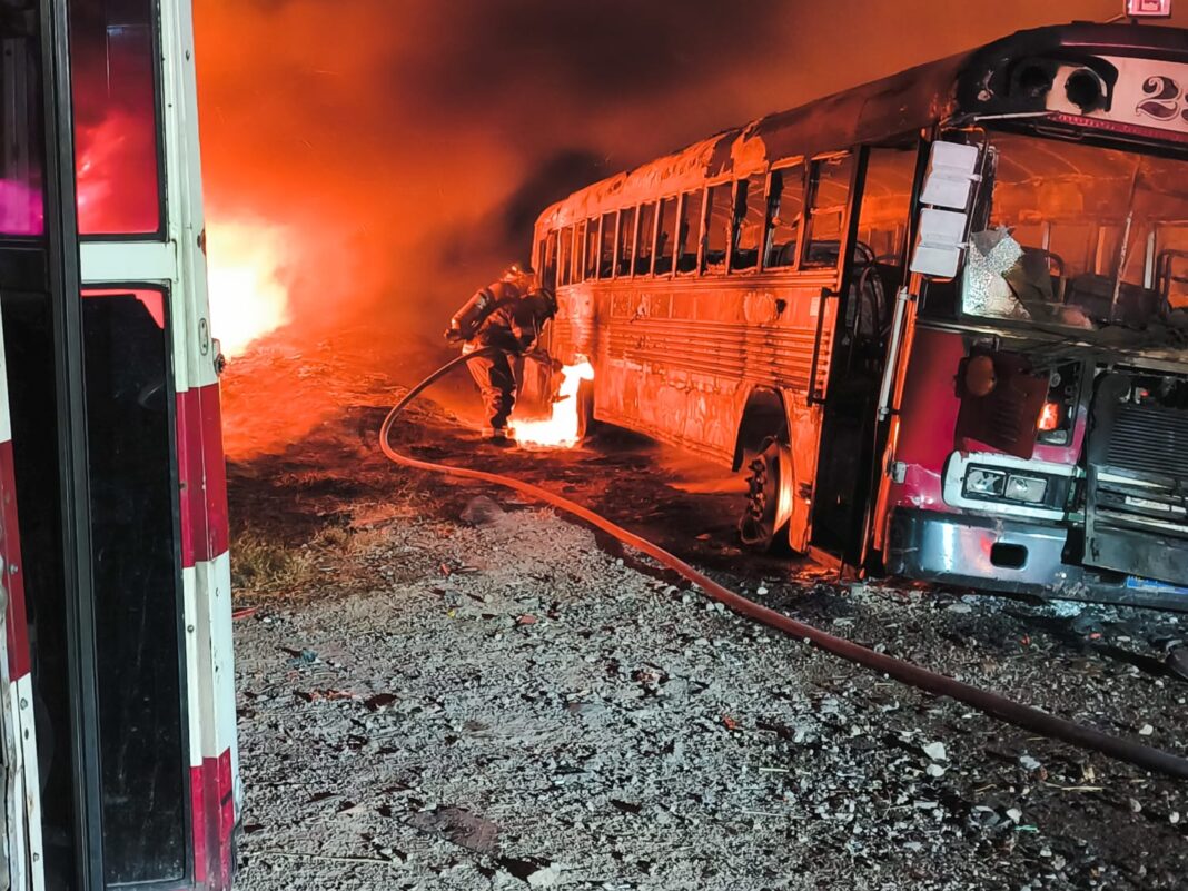 El siniestro, registrado en la Colonia San Francisco, Quinta Alegría, en el Cantón El Limón del referido municipio, dejó el saldo de tres buses completamente consumidos por las llamas.