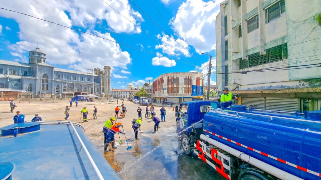 La Alcaldía de San Salvador inició este jueves una jornada de limpieza en el Centro Histórico, ubicado en la capital, tras dar por concluido el proyecto de reordenamiento en los alrededores de la Iglesia El Calvario.