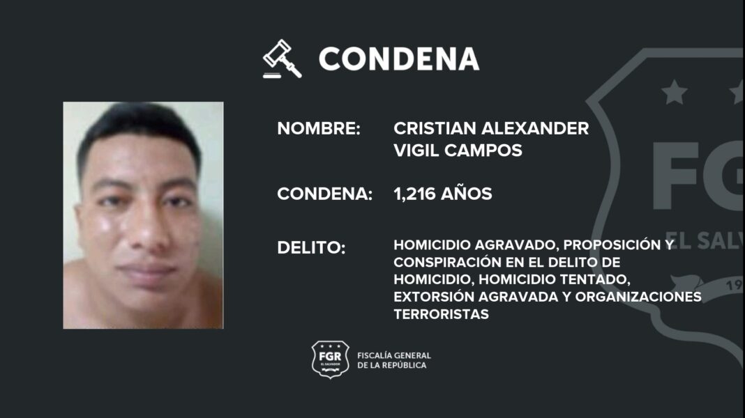 La condena establecida en contra de Cristian Alexander Vigil Campos, es de 1,226 años.