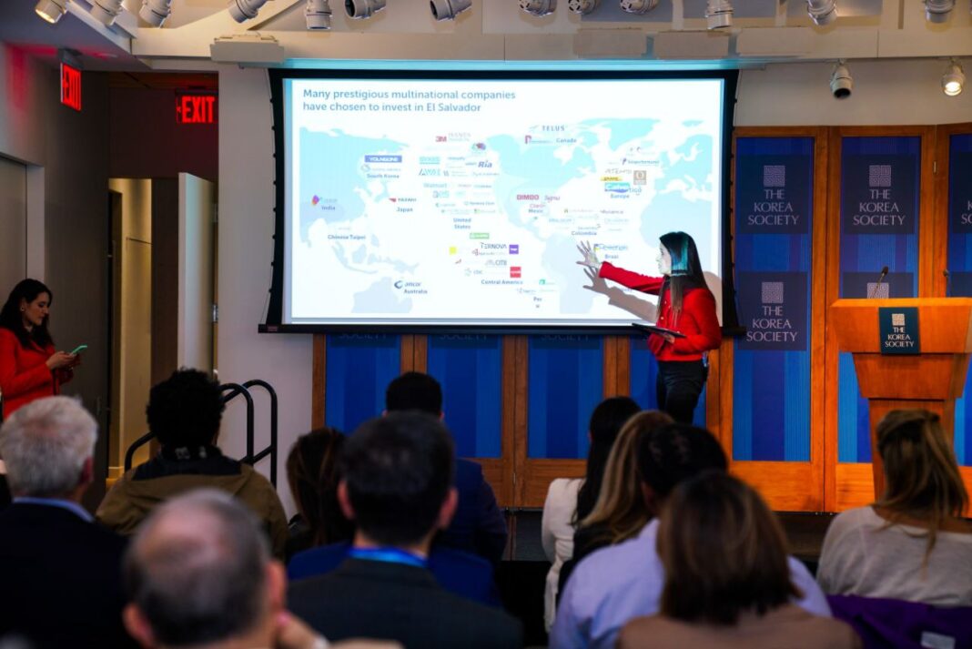 La diplomática también abordó y presentó las potencialidades, ventajas y condiciones favorables que ofrece nuestra nación para la puesta en marcha de proyectos e ideas productivas, que contribuyan al bienestar de la población y al avance de El Salvador.