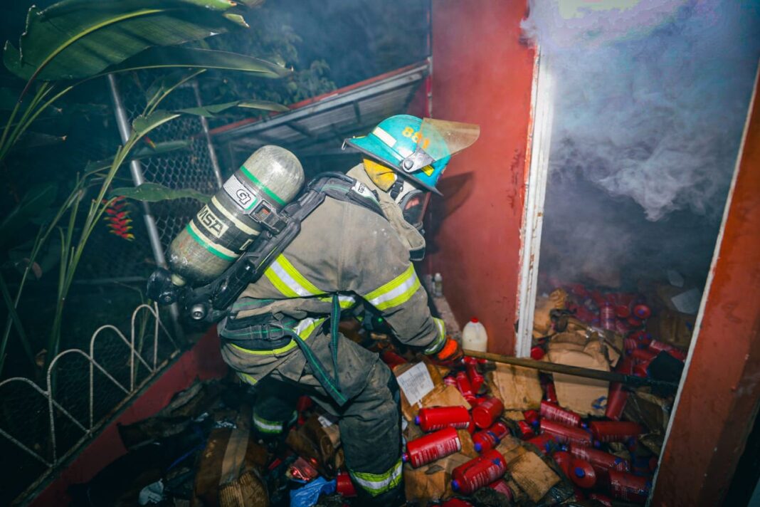 La madruga de este domingo la institución bomberil reportó un siniestro en una bodega ubicada calle principal residencial Santorini, en el municipio de San Marcos, departamento de San Salvador. Las unidades trabajaron por varios minutos para evitar el avance de las llamas a otras estructuras y evitar más afectaciones logrando sofocar el incendio. Sólo se registraron daños materiales.