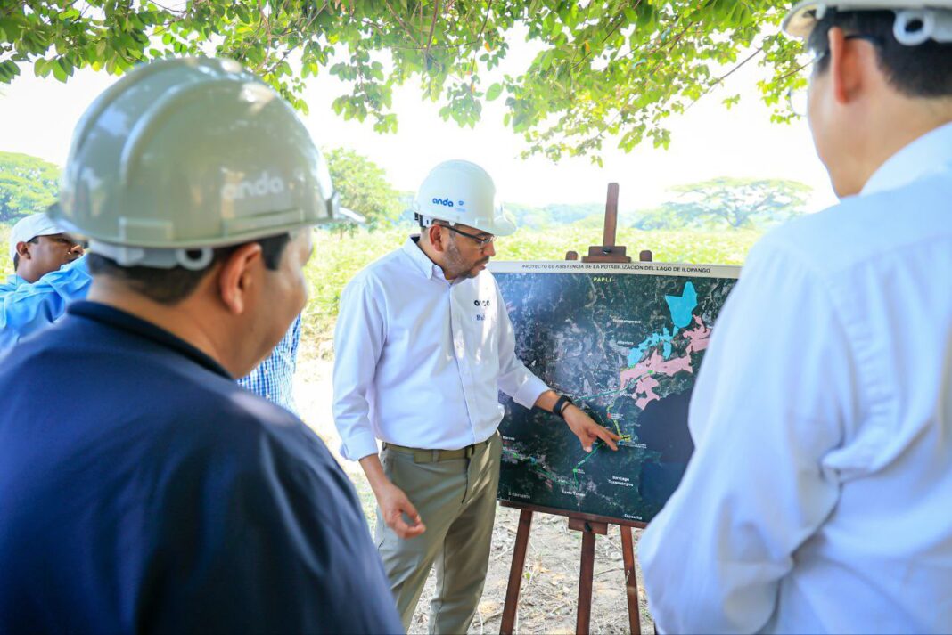El Presidente de la Administración Nacional de Acueductos y Alcantarillados (ANDA), Rubén Alemán, el Embajador de China en El Salvador, Zhang Yanhui, y Al alcalde de Ilopango, José Chicas, visitaron este viernes el sector y zonas de influencia del Proyecto de Asistencia de Potabilización del Lago de Ilopango (PAPLI).