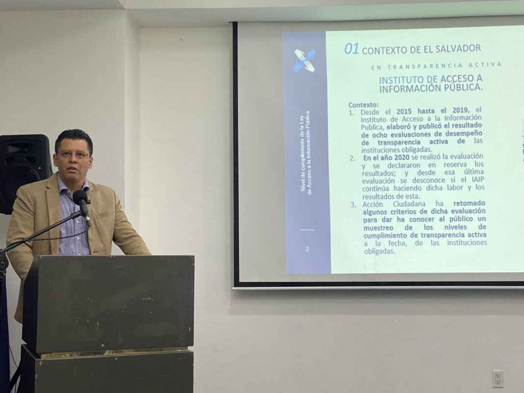 “Esta actividad tiene por objetivo presentar los resultados del monitoreo que se realizó a las diferentes instituciones del Estado, respecto de si estaban cumpliendo con el artículo 10, de la Ley del Acceso a la Información, es decir, tener actualizada, y tener la información que los numerales que ese artículo señalan”, explicó el Director de Acción Ciudadana, Eduardo Escobar.