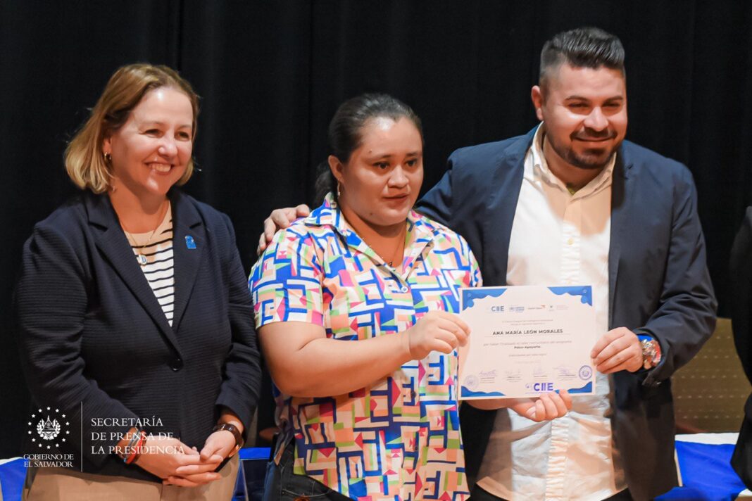 La graduación de los jóvenes fue respaldada también por la representante de la ACNUR en El Salvador, Laura Almirall; quien destacó los esfuerzos en el fortalecimiento de habilidades blandas y la constante capacitación de la juventud.