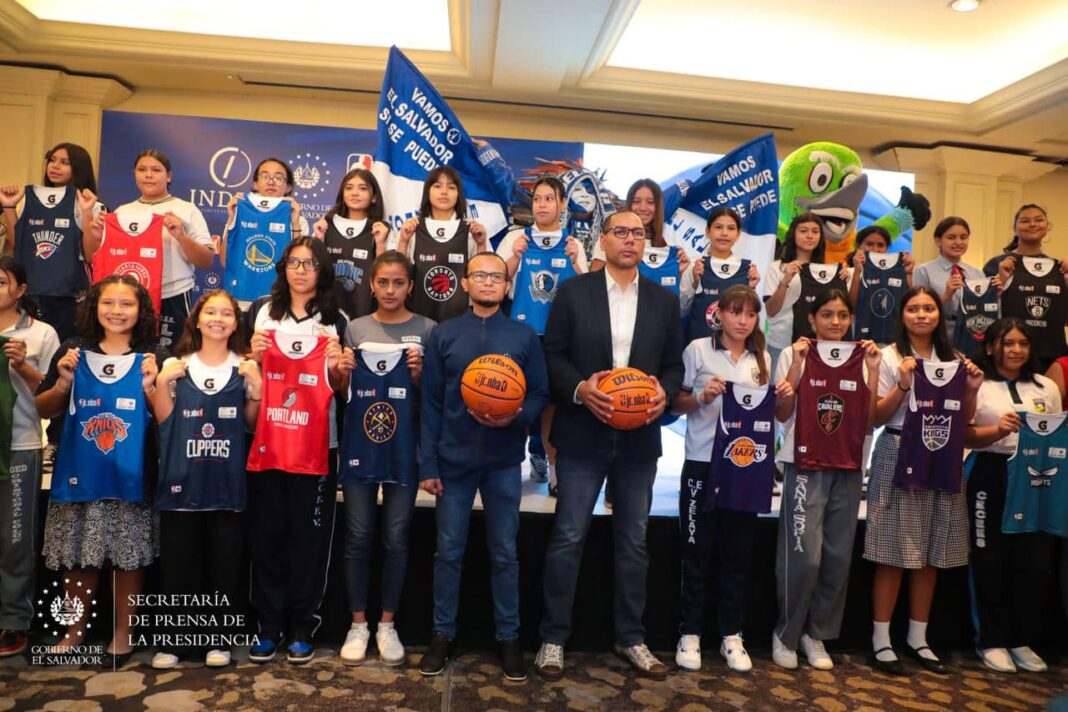“Hoy hemos reunido a 60 equipos (30 masculinos y 30 femeninos) para realizar el sorteo que designará los uniformes que usarán estos quintetos en las etapas que vienen, todo inspirado en las franquicias de la NBA”, detalló Bukele.