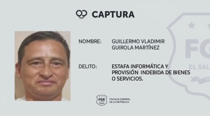 La Fiscalía General de la República giró la orden de captura contra Guillermo Vladimir Guirola Martínez, acusado por las autoridades por los delitos de Estafa Informática y Provisión Indebida de Bienes o Servicios.