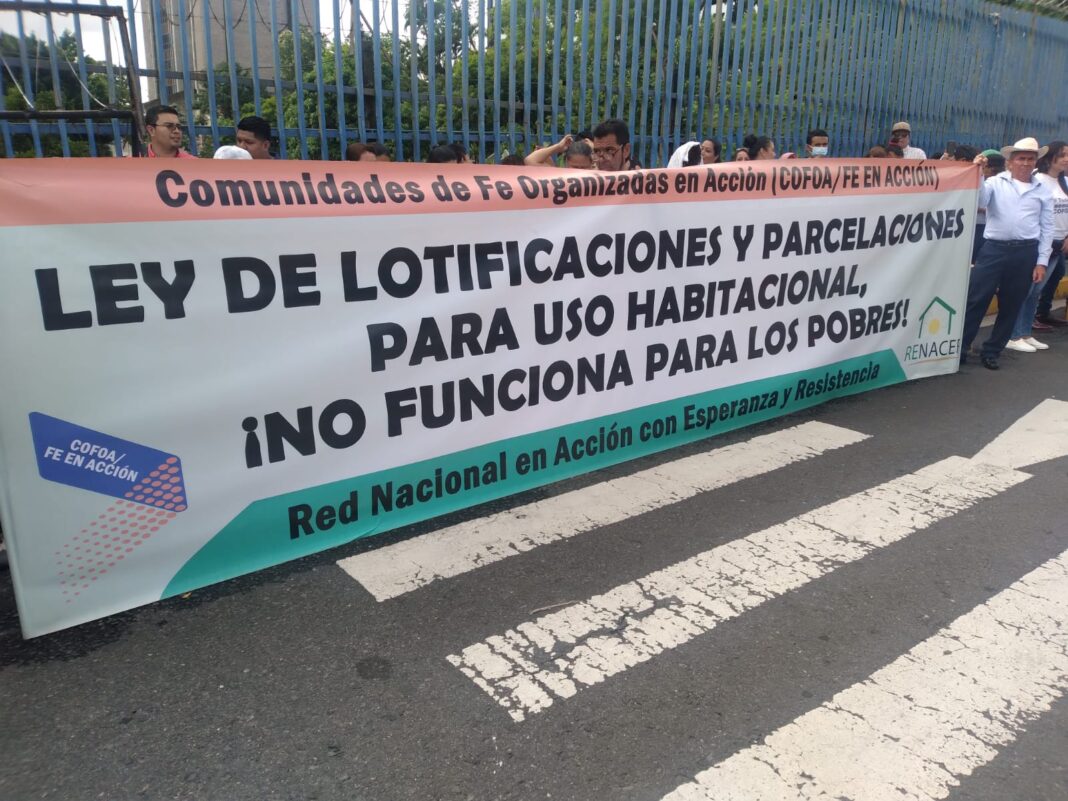 Los representantes de Comunidades de Fe Organizadas en Acción (COFOA) se aglutinaron este martes, ante la Asamblea Legislativa, para presentar una pieza de correspondencia, con el objetivo de que se brinde respaldo jurídico legal ante las lotificadoras.