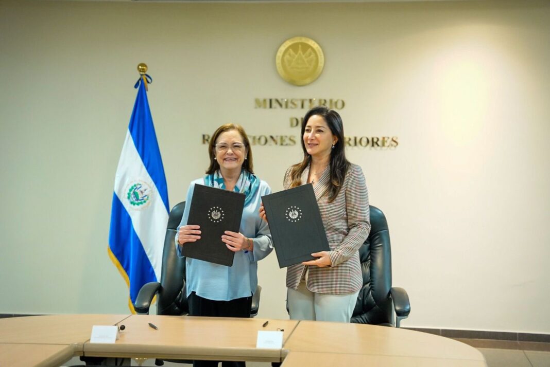 La Ministra de Vivienda, Michelle Sol, y la Canciller de la República, Alexandra Hill, firmaron un convenio con el cual se espera impulsar acciones que faciliten el acceso a vivienda a personas salvadoreñas retornadas o en riesgo de migrar de manera irregular.