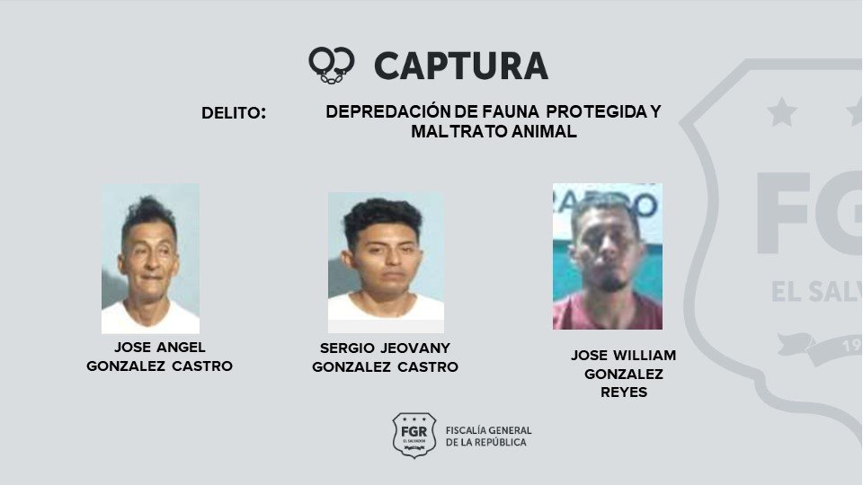 La Fiscalía General de la República (FGR) ordenó la captura de 3 sujetos acusados de realizar cacería ilegal de venados, tepezcuintles e iguanas en los alrededores del Río Torola y San Gerónimo, en el oriente del país.