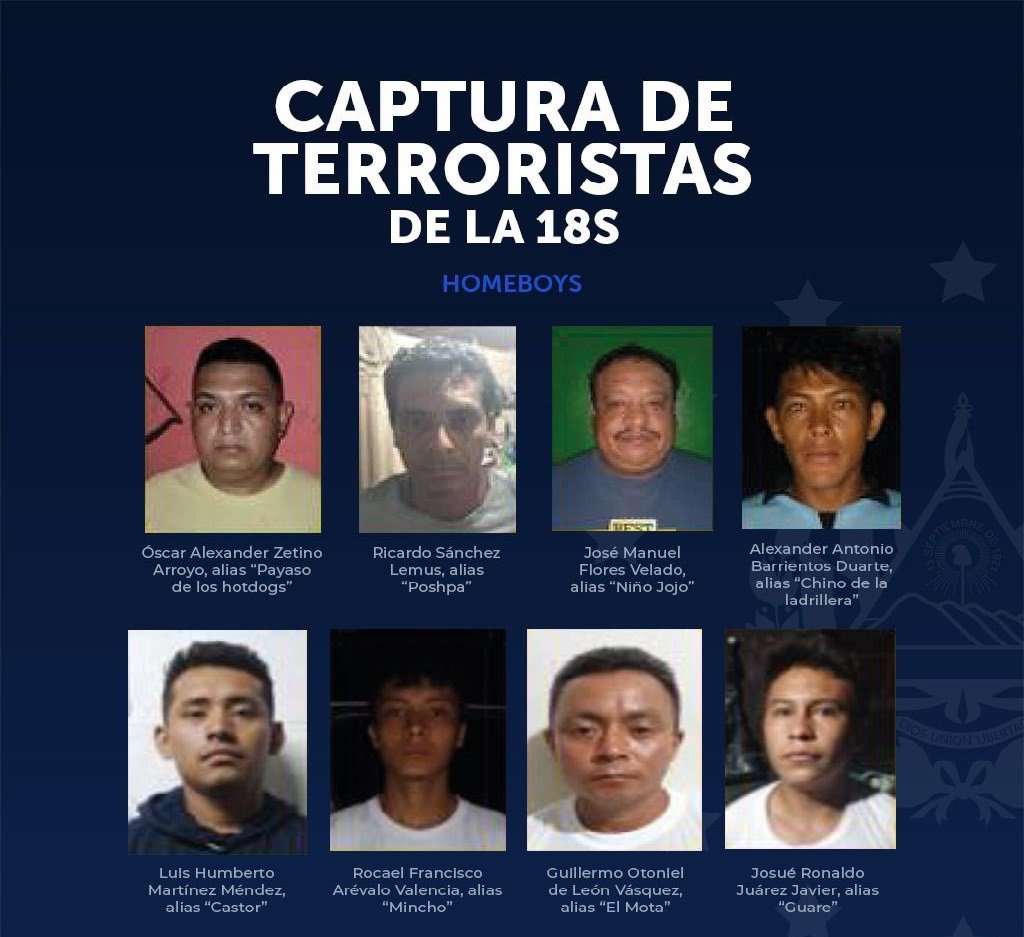 El ministro de Justicia y Seguridad, Gustavo Villatoro, indicó que los sujetos capturados formaban parte de la clica Tribu Chalchuapa de la pandilla 18 sureños, entre los que se encuentran 8 individuos que hostentaban el grado de homeboys dentro de la banda criminal.