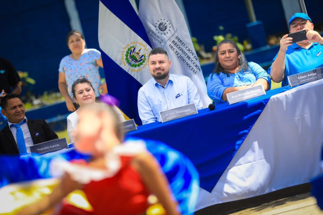 La Dirección de Reconstrucción del Tejido Social inauguró el mes cívico frente a las instalaciones del Centro Urbano de Bienestar y Oportunidades (CUBO) de la colonia IVU, en San Salvador.