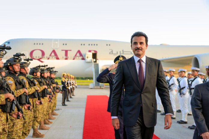 Este martes, el Vicepresidente de la República, Félix Ulloa, recibió al Emir del Estado de Qatar, Tamin Bin Hamad, en el Aeropuerto Internacional de El Salvador.