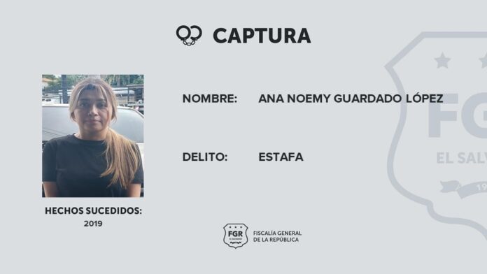 La Fiscalía General de la República (FGR) giró este jueves una orden de captura contra Noemy Guardado López, acusada de presuntamente estafar a una persona con más de $32,000.00 en un proyecto de inversión de un negocio.